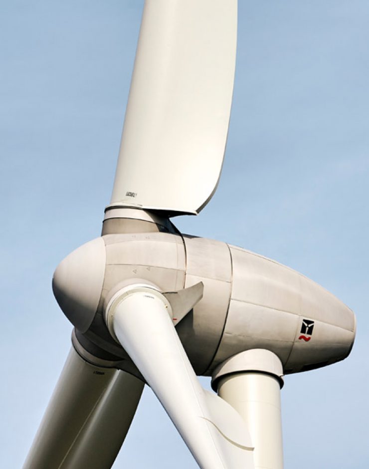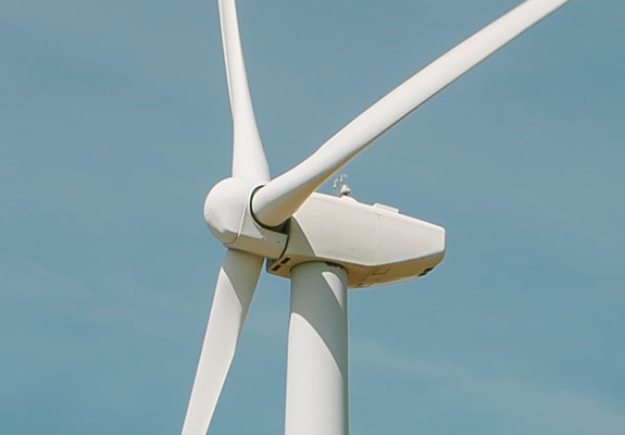 Wind turbines operate on a simple principle. The energy in the wind turns two or three propeller-like blades around a rotor. The rotor is connected to the main shaft, which spins a generator to create electricity.